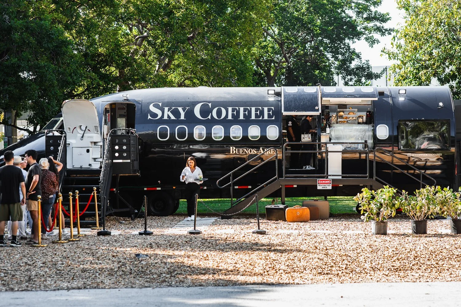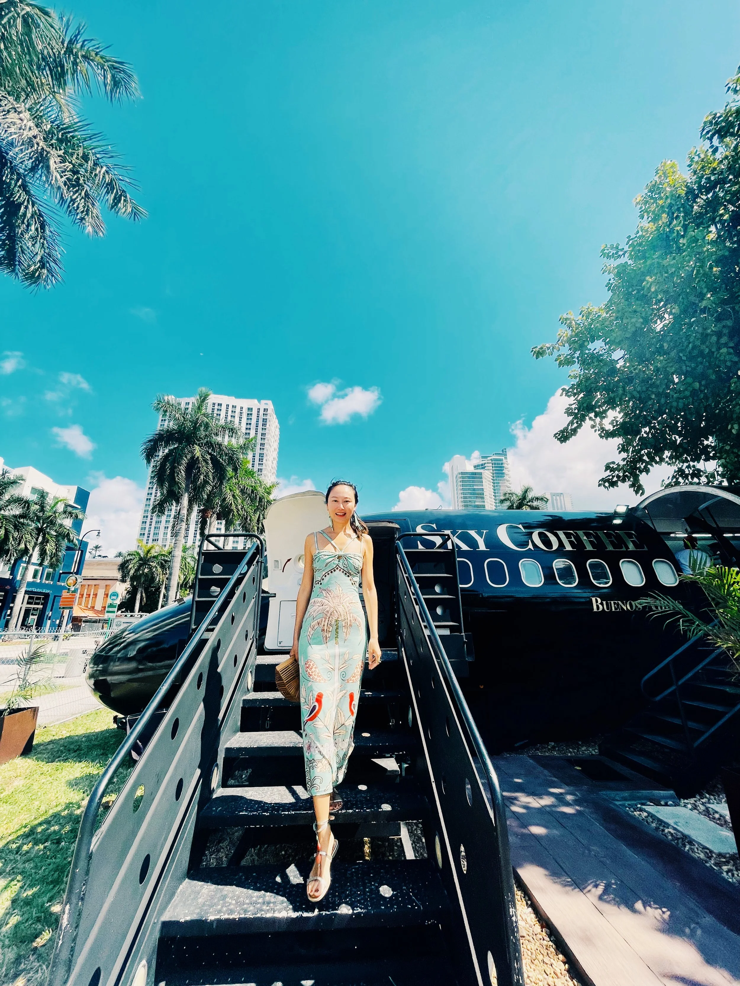 Cafe inside an airplane. The owner sold her house and bought this retired aircraft from Delta. She always wanted to be a flight attendant but was told she was too short. Now she has realized her childhood dream of being in the sky by bringing Sky Coffee onto the ground of Edgewater Miami.